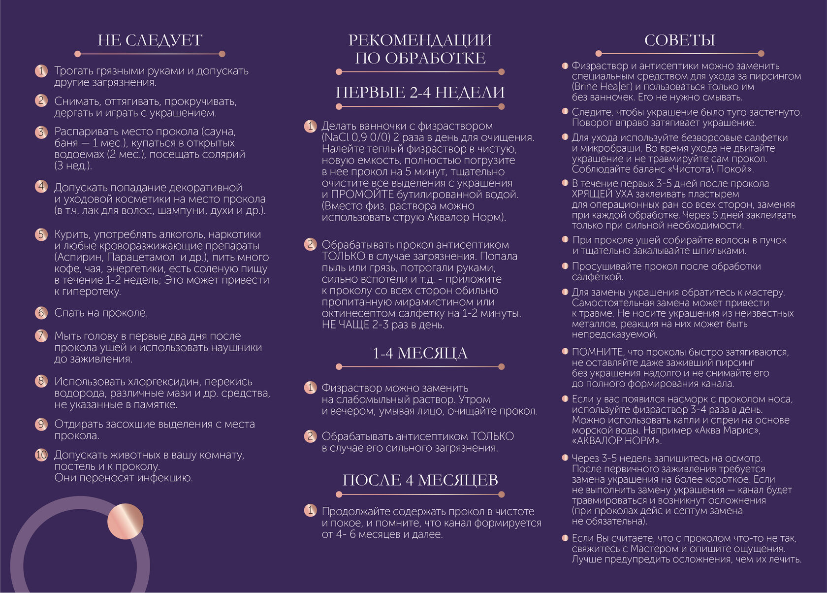 ПОМНИТЕ, что проколы быстро затягиваются, не оставляйте даже заживший пирсинг без украшения надолго и не снимайте его до полного формирования канала.